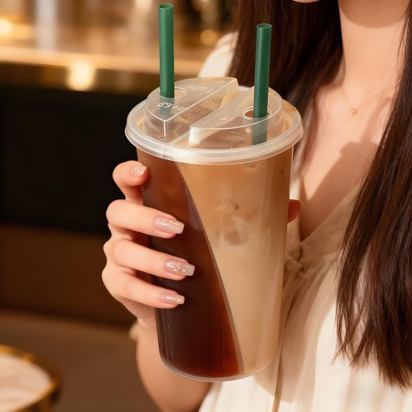 Unlike traditional single cups, the Double Share Split Cup features two separate compartments in one crystal-clear PP cup. Each side can hold a different drink — fruit tea and milk tea, smoothie and juice, or coffee and cold brew — offering a “two-in-one” experience customers love.